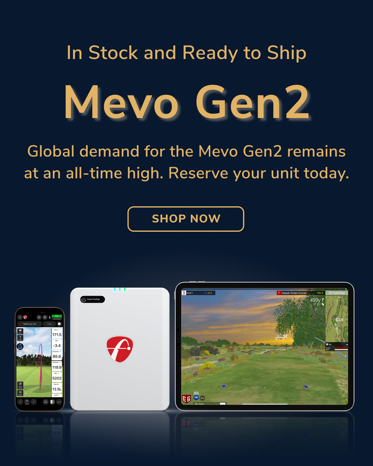 - Mevo units that have been returned within the 30-day return period, mostly by users who traded in for Mevo+ which offers more data parameters and also syncs to other golf simulator software.
